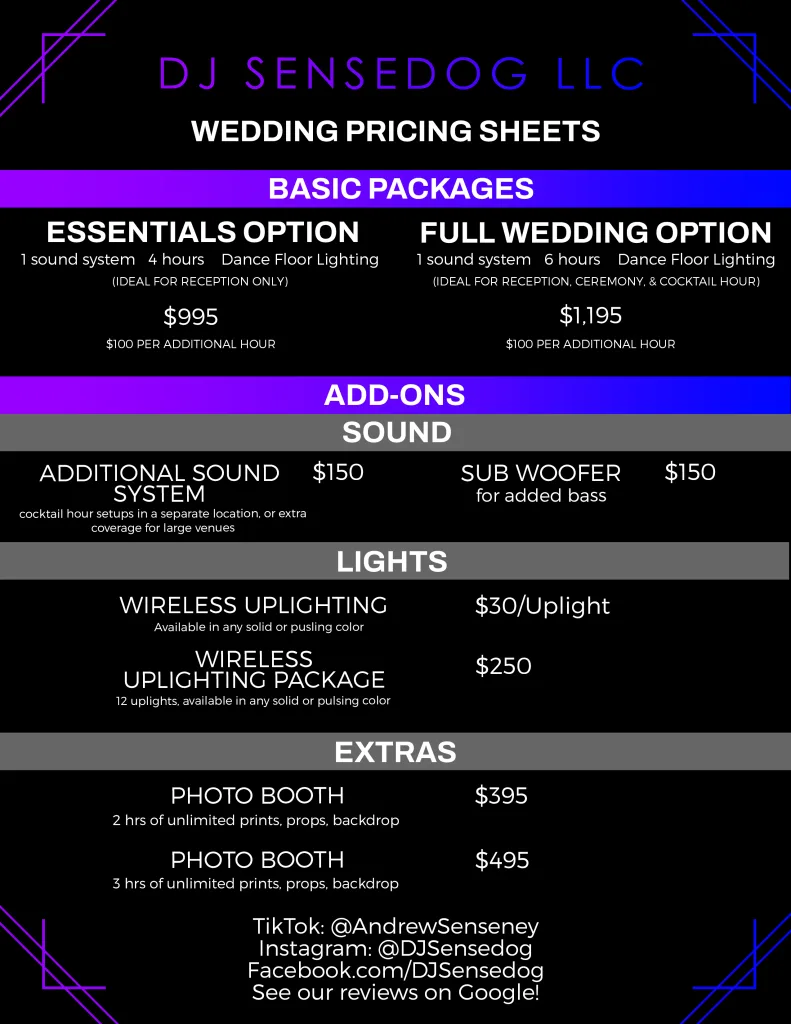 *See Wedding Pricing Sheet at the bottom of this page.*